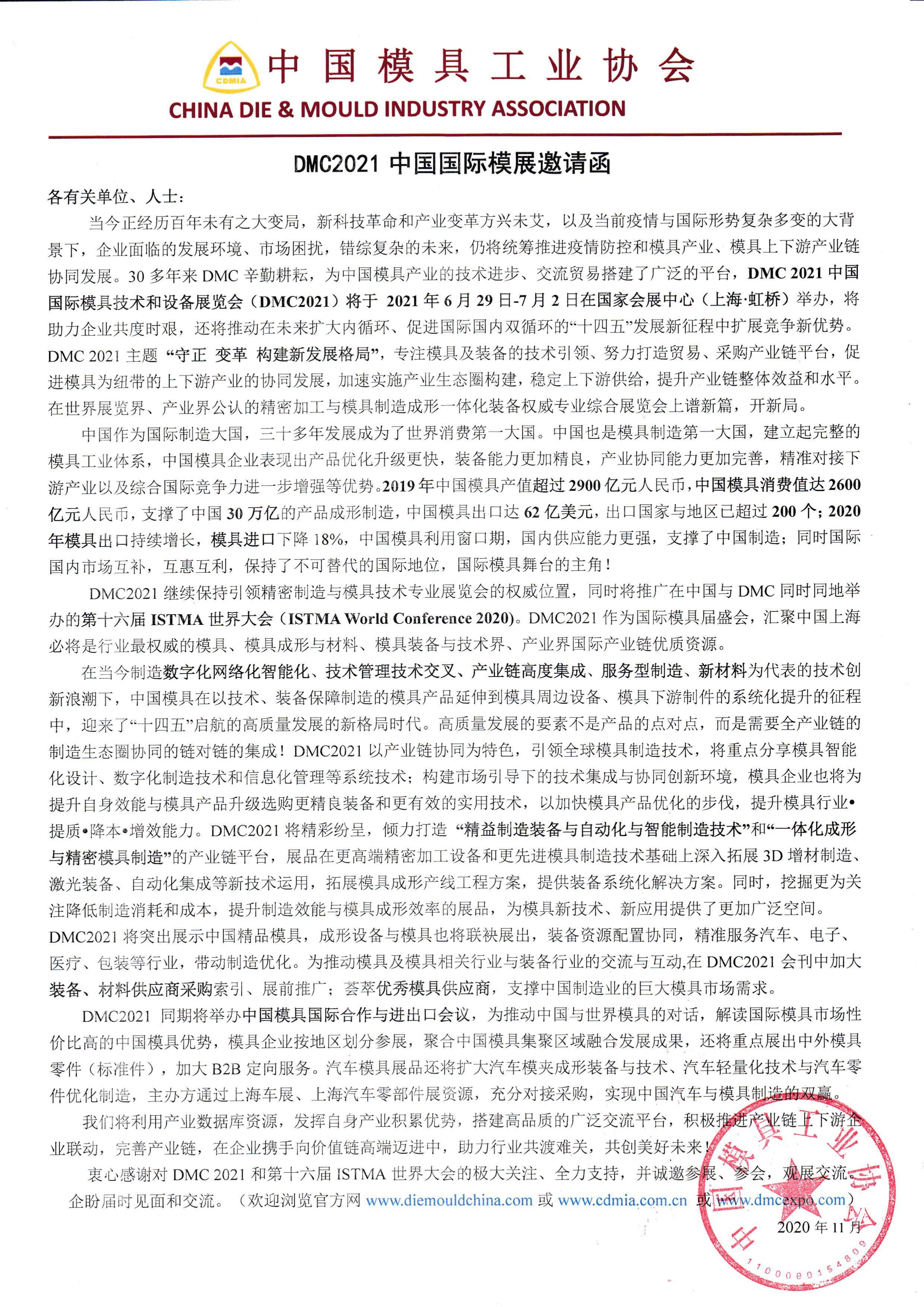2022年“中国国际模具技术和设备展览会”(DMC2022)将延期举办