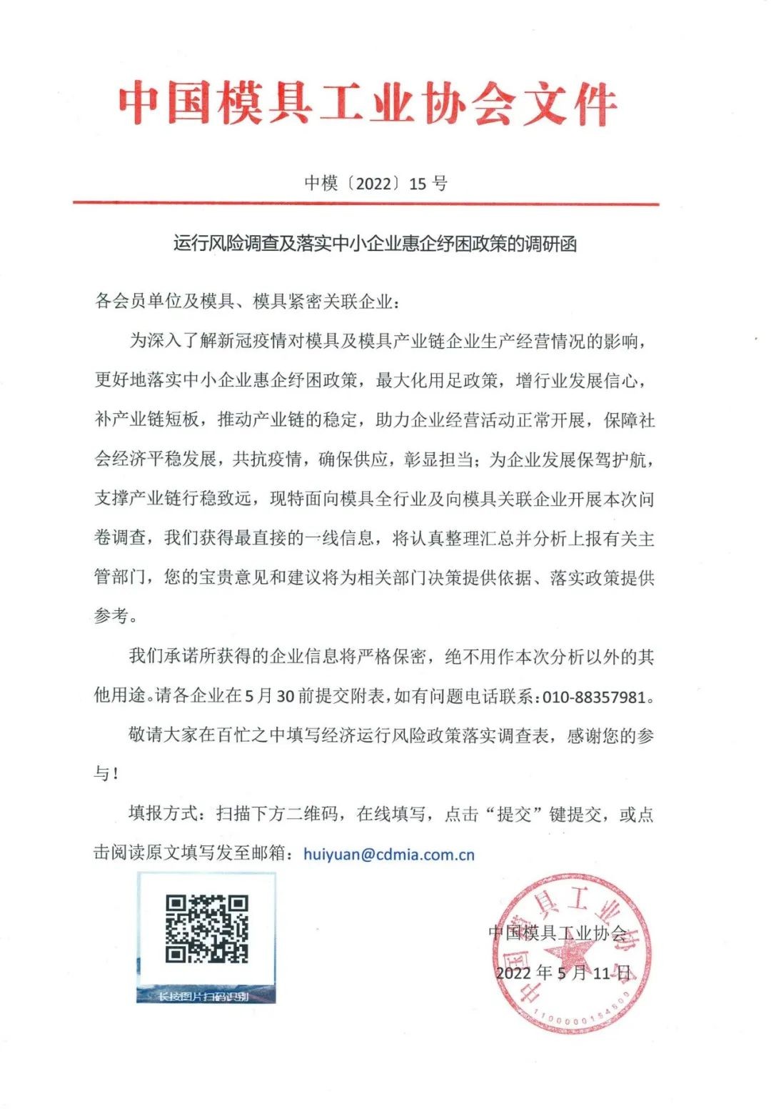转发中国模协关于风险调查及落实中小企业惠企纾困政策的调研